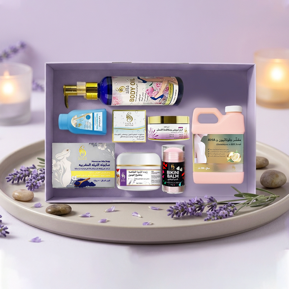 روتين متكامل يجمع أقوى منتجات التفتيح والعناية بالبشرة في باقة واحدة، لتفتيح الجسم، توحيد اللون، وترطيب عميق بنتائج ملحوظة قبل الزفاف.