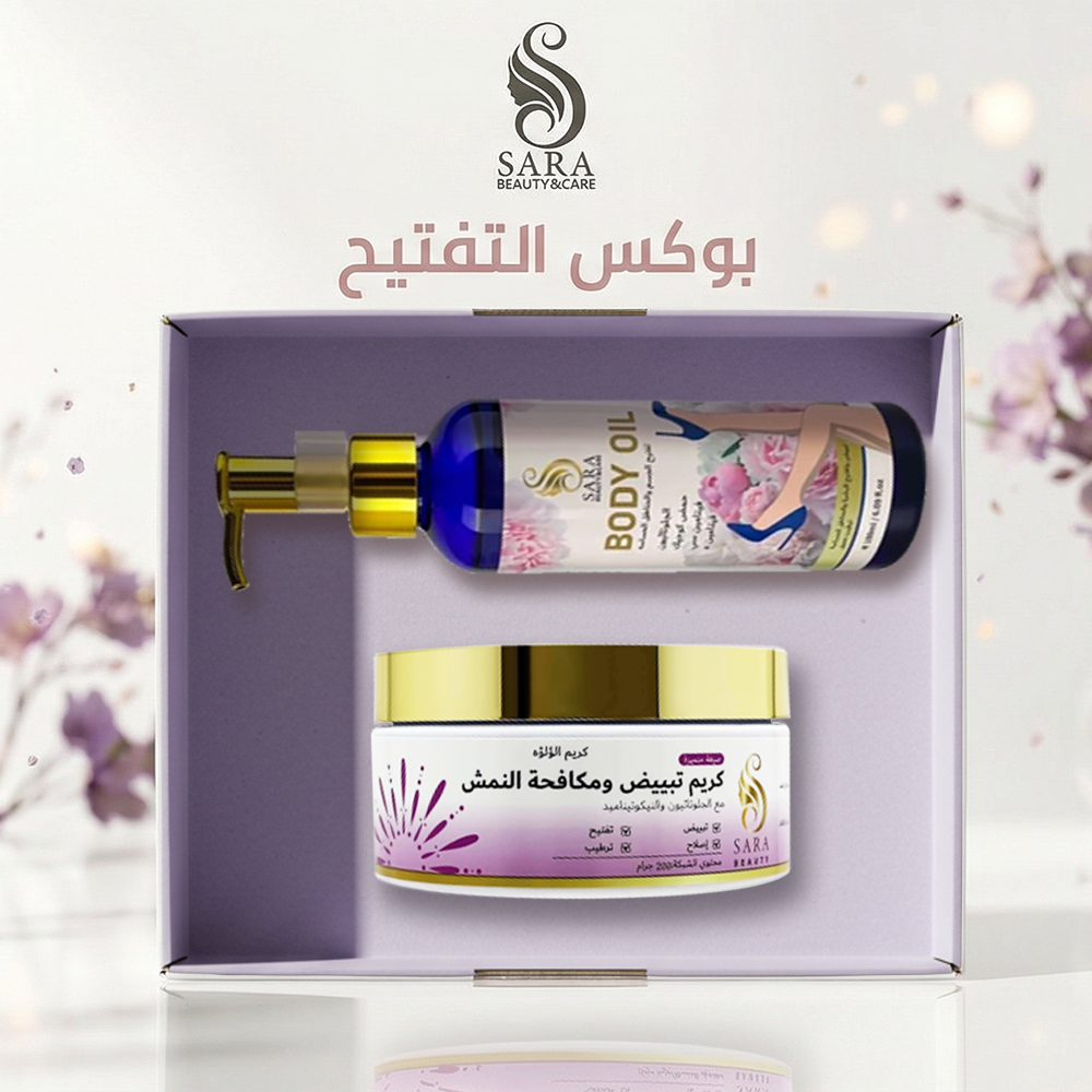اطلبي بوكس التفتيح من متجر سارة بيوتي وتمتعي ببشرة أكثر إشراقًا، لون موحد، وملمس ناعم بثقة ولمسة فاخرة ✨